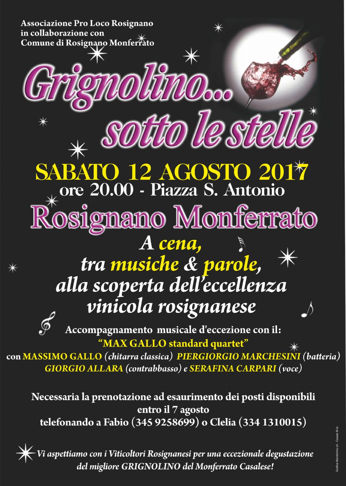 Vi aspettiamo a Rosignano per una serata indimenticabile, brindando sotto il clielo stellato con i migliori Grignolini del Monferrato! Tra buoni piatti, musica e.....