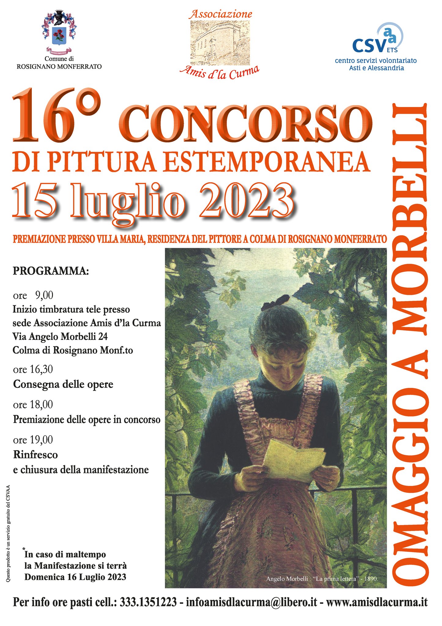 In caso di maltempo, la manifestazione si terrà domenica 16 luglio.
