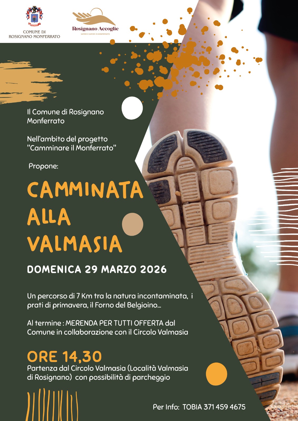 Domenica 29 marzo - alle ore 14,30 con partenza presso il Circolo in località Valmasia di Rosignano Monferrato si svolgerà la “CAMMINATA ALLA VALMASIA” lungo un piacevole ed inedito percorso che toccherà tutto il territorio intorno alla Valmasia ed anche il Forno comunale di località Belgioino.