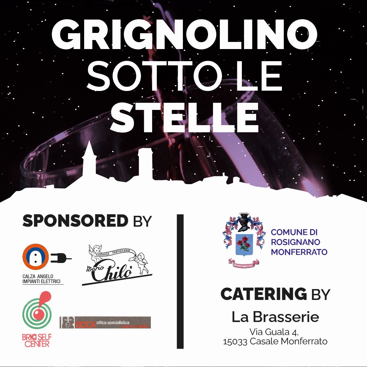 Un carnet molto ricco e variegato, con un sottofondo musicale moderno ed accattivante che accompagnerà i partecipanti per l'intera festa, al centro della quale ci sarà l'unico grande protagonista: il Grignolino doc e docg delle colline rosignanesi e monferrine, le cui variegate e molteplici declinazioni di assoluta qualità verranno proposte in accompagnamento alle portate della cena, con diverse etichette di altrettanti Produttori locali.