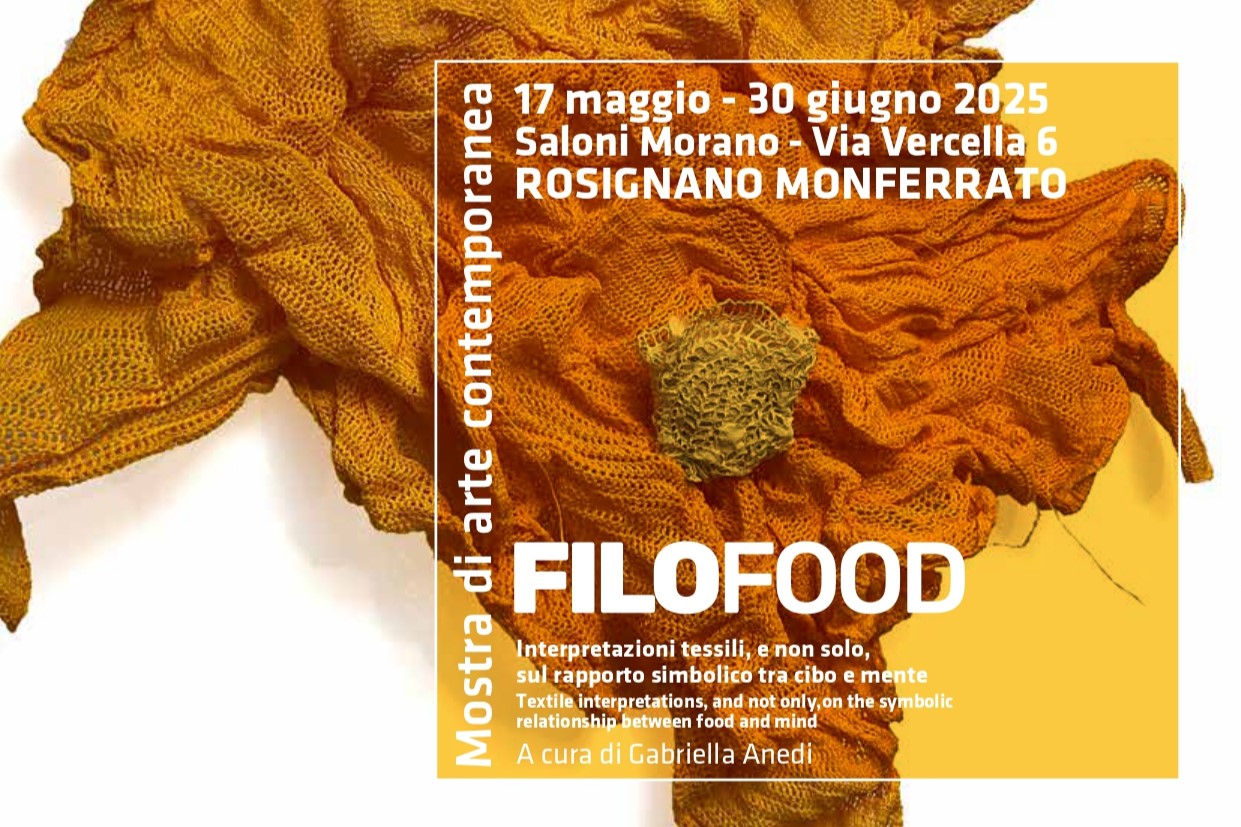 Cibo e arte si intrecciano in un dialogo sorprendente nella mostra "Filo Food", curata da Gabriella Anedi - Fiber Art And in collaborazione con il Comune di Rosignano Monferrato. Un’esposizione originale che invita a riflettere sul nostro rapporto con il cibo attraverso una selezione di opere tessili, fotografie e ceramiche, tutte accomunate da un unico, gustoso filo conduttore.