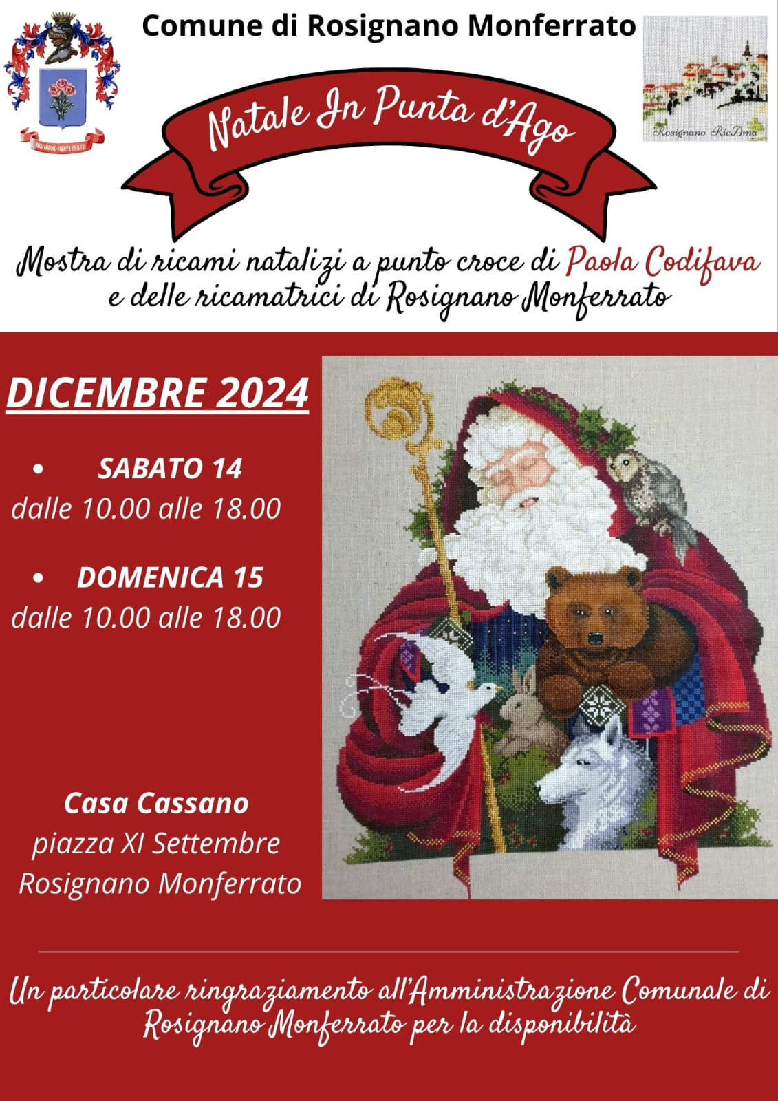 Mostra di ricami natalizi a punto croce di Paola Codifava e delle ricamatrici rosignanesi.