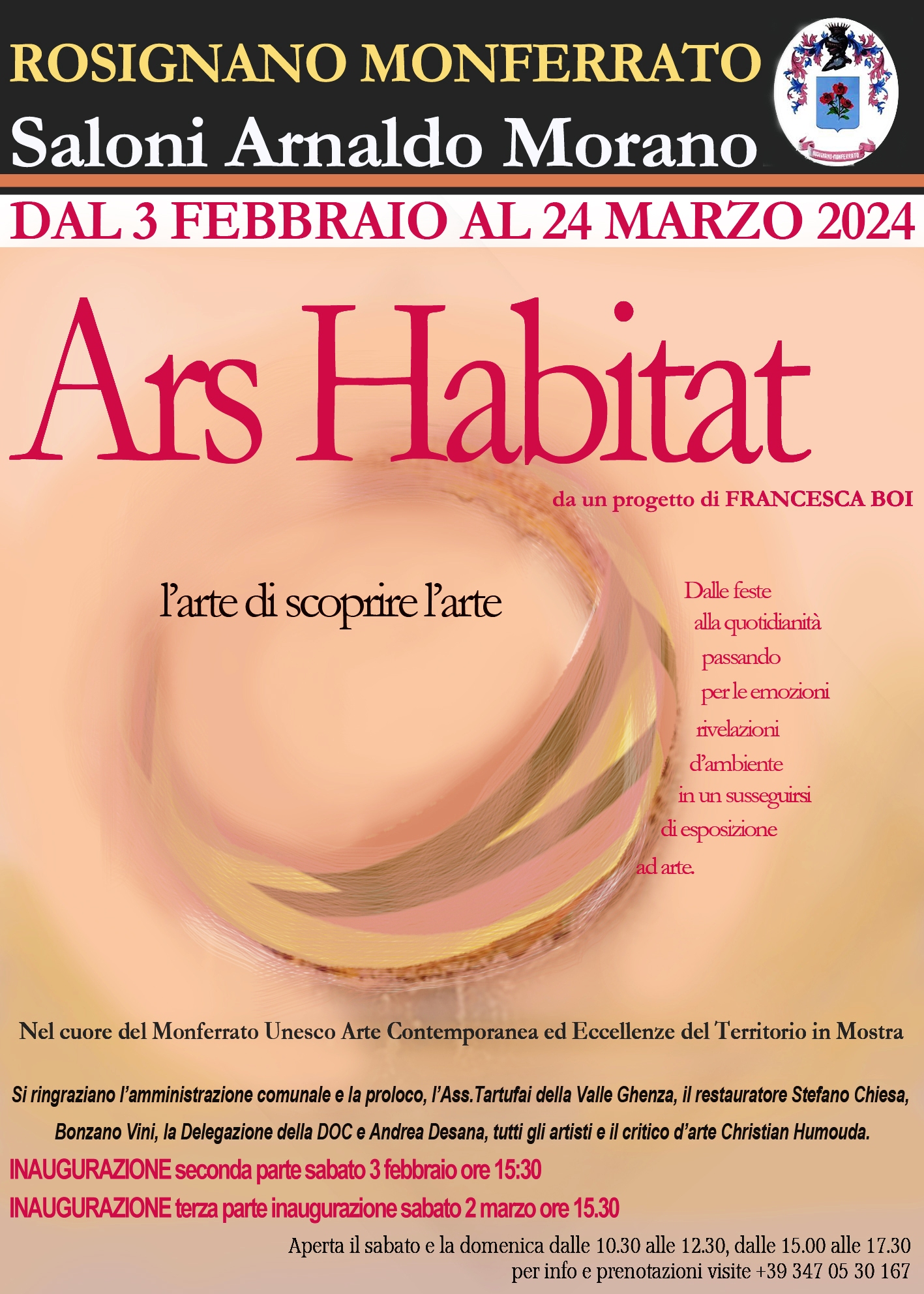 La rassegna d'arte Ars Habitat - l'arte di scoprire l'arte accoglie il pubblico offrendo una visione nuova delle opere d’arte associate alle opere d’arte che offre il territorio, attraverso allestimenti non ordinari e in evoluzione, capace di apportare la freschezza dell’esposizione minimale e la vivacità del cambiamento, in contrapposizione a quanto comunemente è più legato alla tradizione espositiva, proprio a significare lo scorrere della vita, caratterizzato anche dal susseguirsi di eventi imprevisti, spesse volte spostando e trasformando i nostri punti fissi.