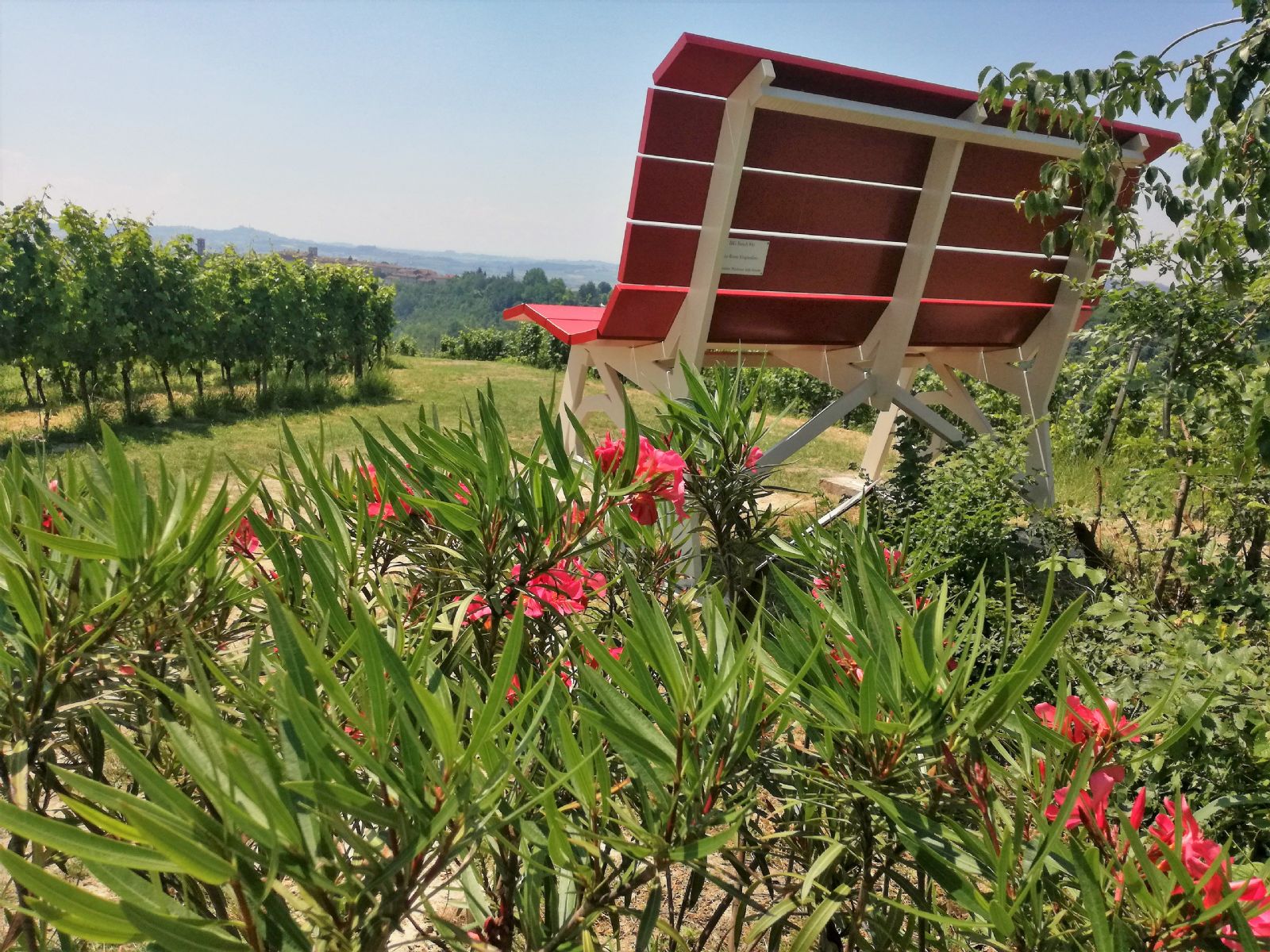 Si tratta della Big Bench n. 41 “Rosso Grignolino”, da cui si può godere di una vista mozzafiato sulle colline circostanti del Basso Monferrato, fino alle Alpi ed agli Appennini. La panchina è alta più di 2 metri e lunga 3,5 metri e rientra nel progetto ideato dallo statunitense Chris Bangle che ha già coinvolto altre località in Piemonte.
